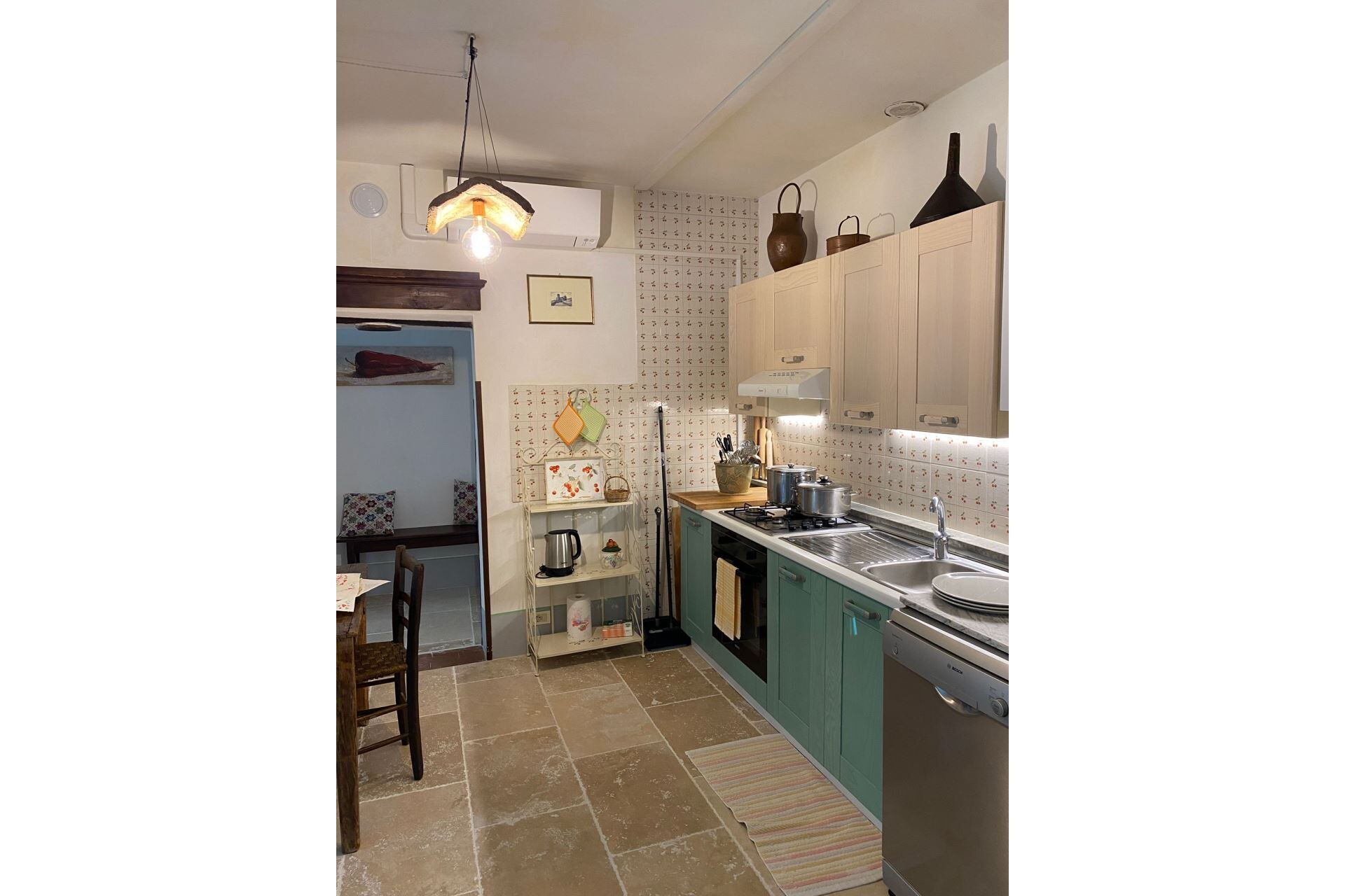 Kühlschrank mit Gefrierfach, Backofen, Spülmaschine, Moka-Kaffeemaschine, Toaster