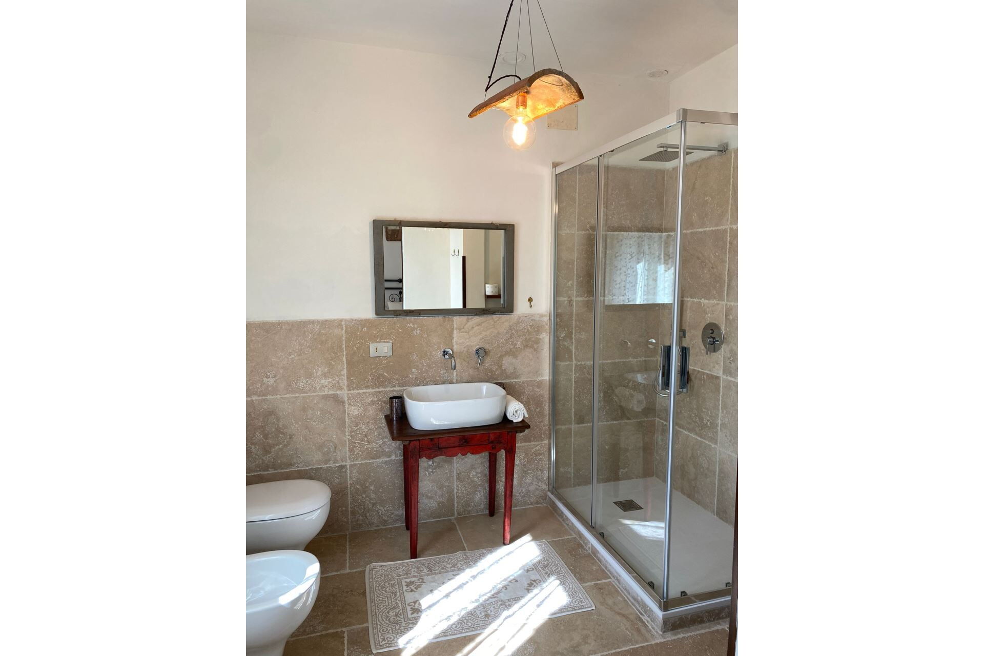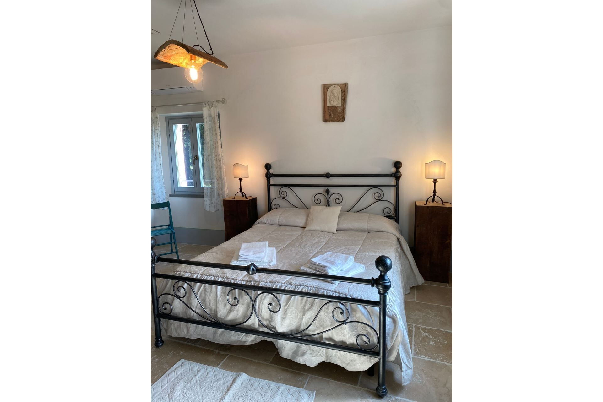 ERSTER STOCK: Zugang über eine Außentreppe (5 Stufen), zwei Doppelbettzimmer, Bad mit Dusche, räumiges und lichtvolles Wohn/Esszimmer mit Kamin, Sofas und Kochnische, Ausgang zur aussichtlichen Terrasse mit Tisch, Bänke und Sonnenschirm ausgestattet um im Freien zu essen. Doppelzimmer mit Kamin und Privatbad mit Dusche, Doppelzimmer mit Privatbad mit Dusche.