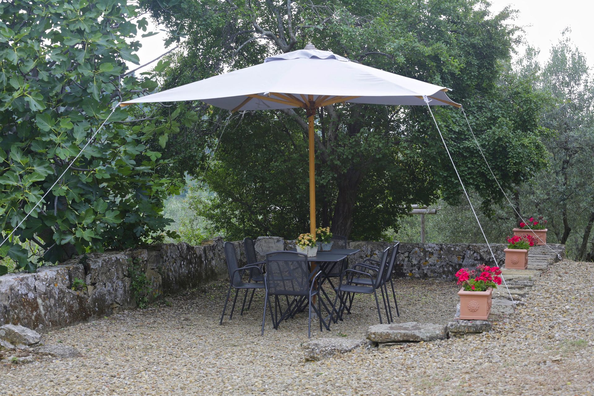 Im Garten verfügen die Gäste dieser Wohnung über einen privaten Bereich.