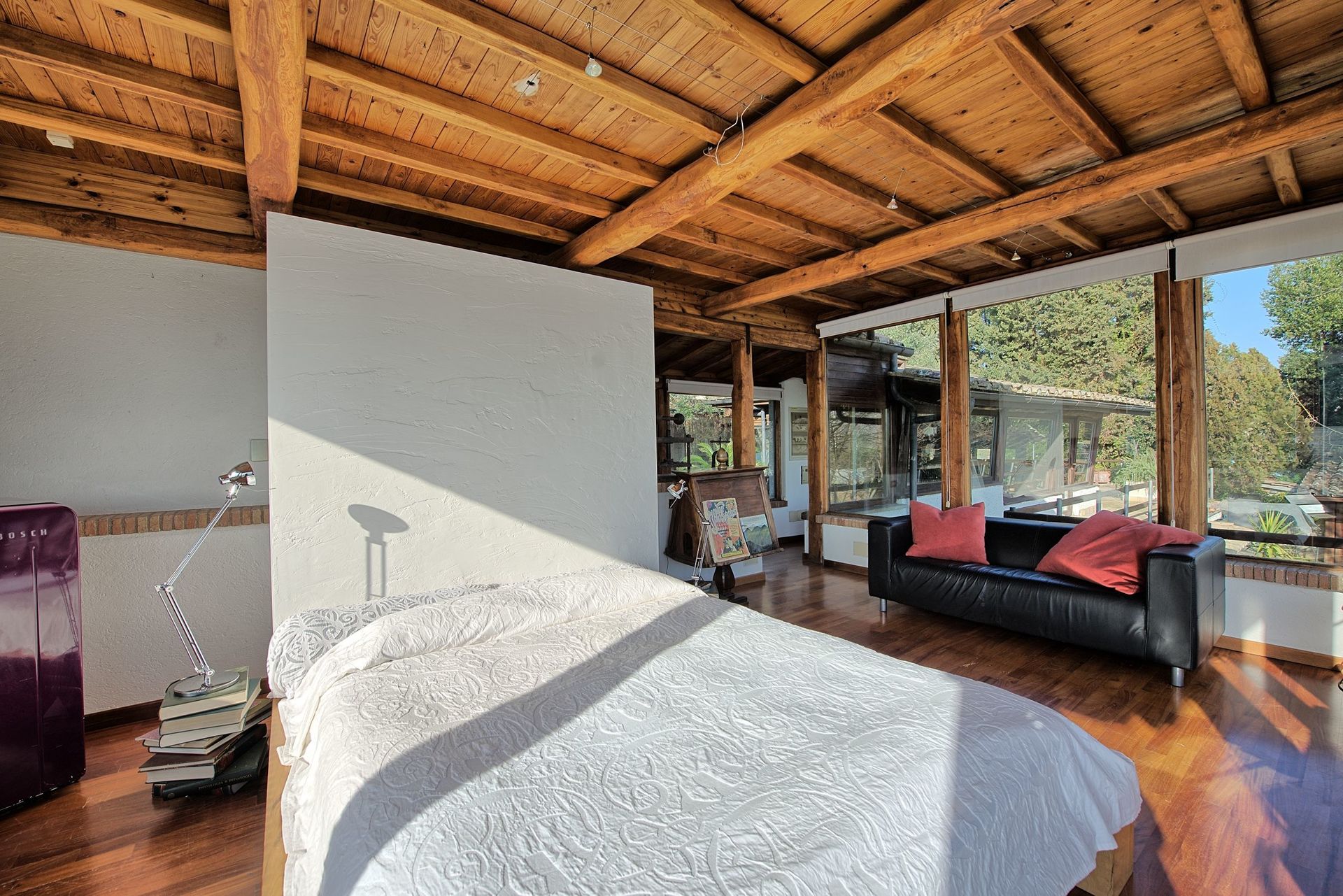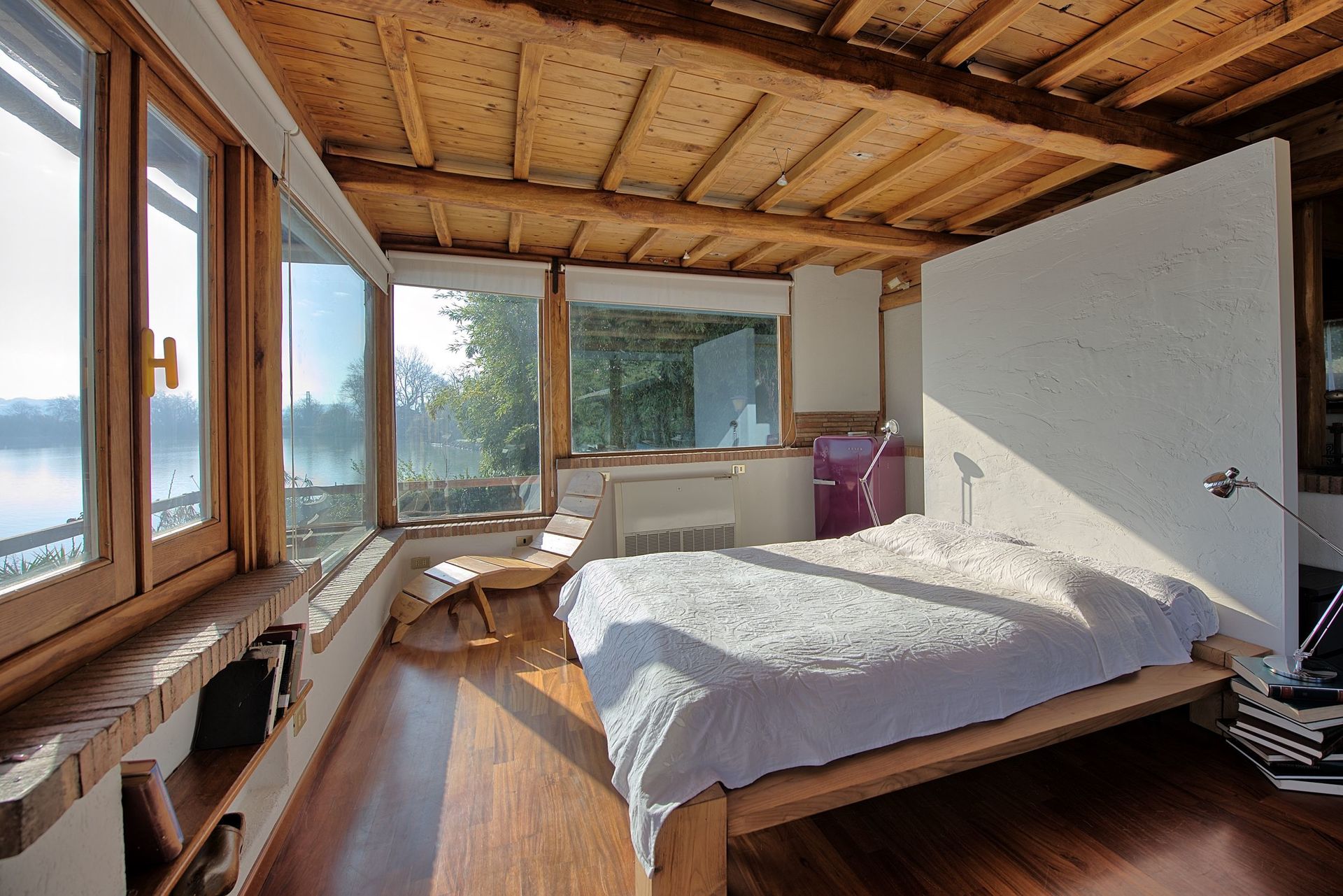 Das Haus ist vorallem im oberen Stockwerk sehr hell und von der Terrasse aus, die sich an der Aussenwand entlangzieht blickt man auf den Fluss und von der Dachterrasse aus kann man einen traumhaften Blick über die Gegend geniessen.