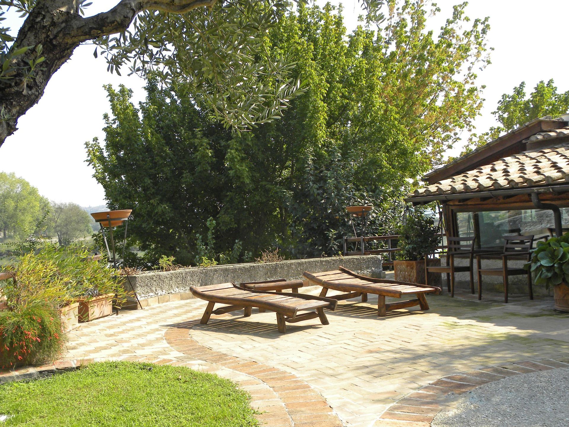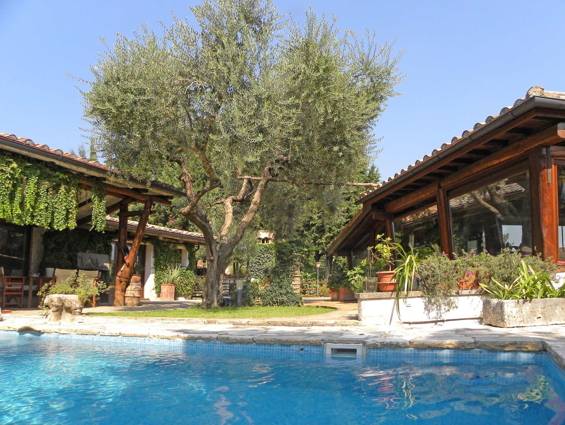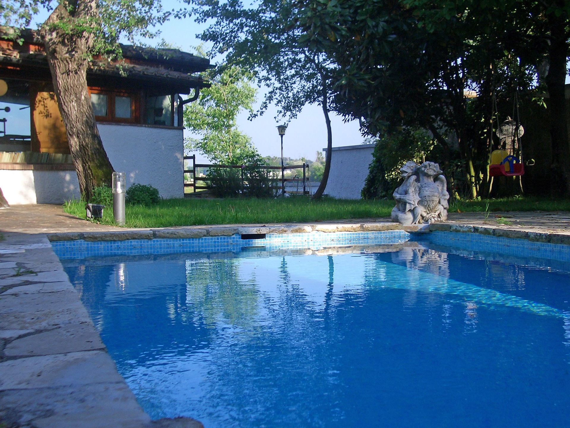 In der Mitte des Besitzes befindet sich das Schwimmbad (6,5 x 3,5 m.; Tiefe: 1,2 m.) welches den Gästen von „La Casa sul Tevere“ exklusiv zur Verfügung steht. Auch der Aussenbereich um das Schwimmbad herum und vor dem Appartment ist ausschliesslich für die Gäste reserviert, allerdings haben die anderen Appartments Fenster die auf diesen Aussenbereich blicken.