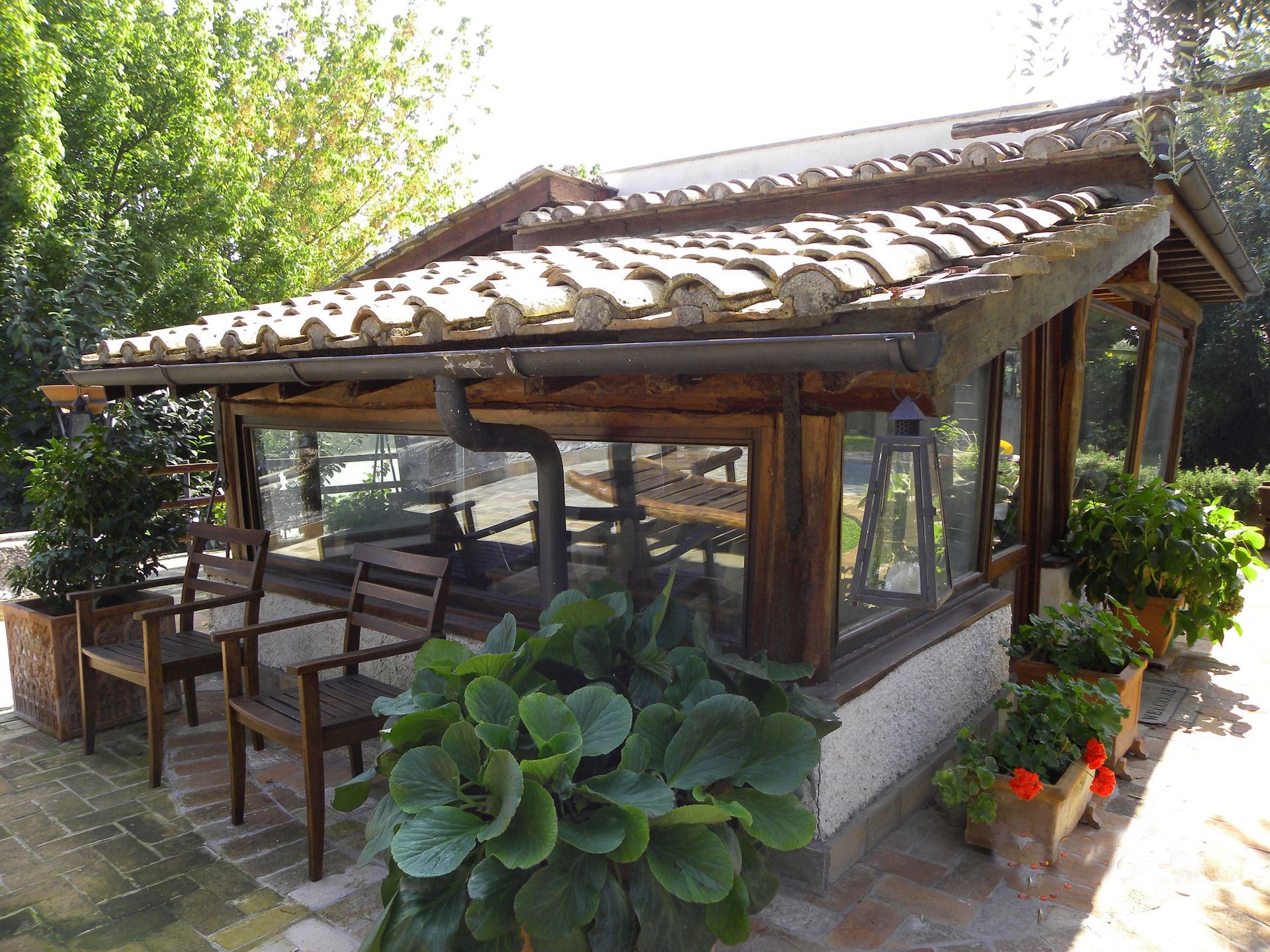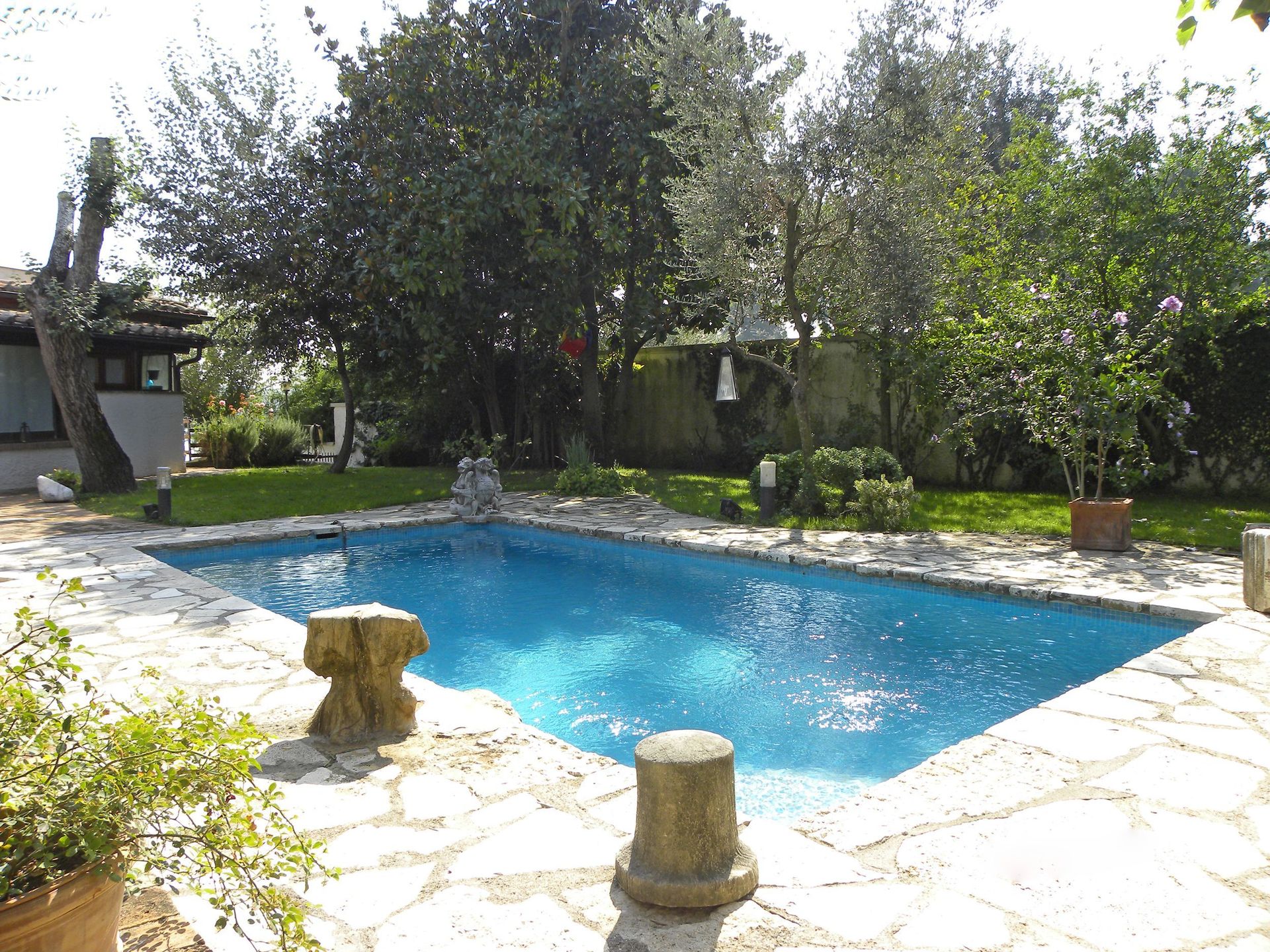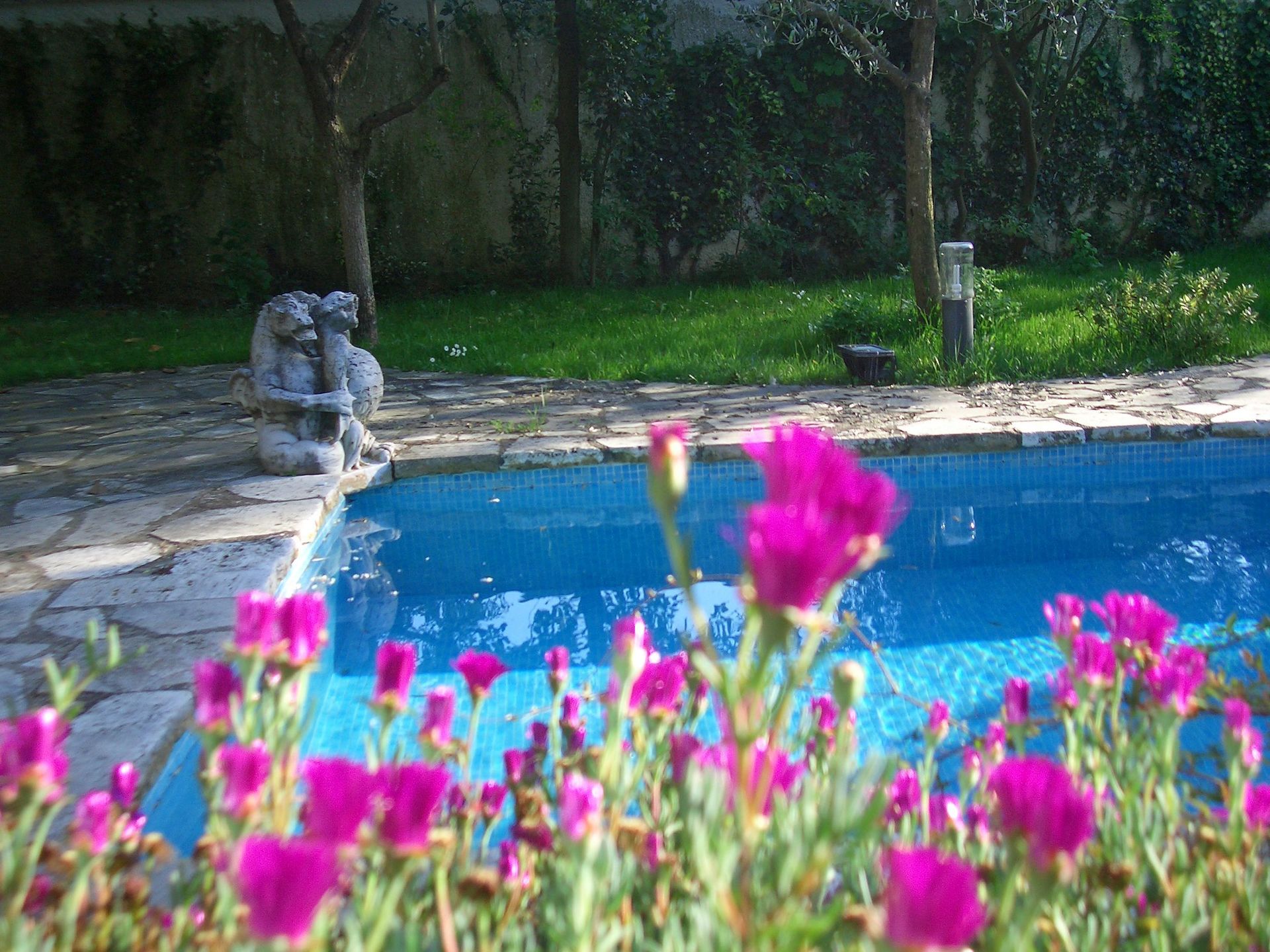 In der Mitte des Besitzes befindet sich das Schwimmbad (6,5 x 3,5 m.; Tiefe: 1,2 m.) welches den Gästen von „La Casa sul Tevere“ exklusiv zur Verfügung steht. Auch der Aussenbereich um das Schwimmbad herum und vor dem Appartment ist ausschliesslich für die Gäste reserviert, allerdings haben die anderen Appartments Fenster die auf diesen Aussenbereich blicken.